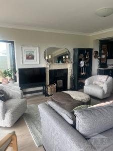 Recently upgraded house overlooking sea and Kilkee golf club. The house is located in Kilkee which is a beautiful seaside town 10 km from Doonbeg golf course. It is one hours drive from Shannon Airport. This Irish Open Accommodation has spectacular views overlooking 14th green. Three bedrooms with 2 en-suite decorated to a 5 star hotel standard. Spacious kitchen and utility room with state of the art appliances. Open plan living room with all new furniture and a stove. Dining area with table that fits 10 people. Outside there is a garden and wood fired hot tub with beautiful view. The house is walking distance to pubs and restaurants in Kilkee. Kilkee golf club is on your doorstep with Doonbeg, Lahinch and Dromoland golf courses all less than one hour drive. The stunning Loop Head peninsula is nearby for exploration. This house espouses calm and relaxation with its beautiful surroundings and refined interior.
