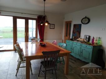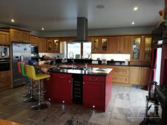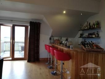 This substantial modern house is complete with all mod cons. A beautiful entrance hall leads down to a large open plan kitchen/dining area, the kitchen itself is fully equipped with all conveniences incl American style fridge/freezer, built-in coffee maker, steam oven, microwave, fan oven, gas hob, wine cooler, boiling hot water tap and a well stocked separate pantry. There is a multi-fuel burning stove in the kitchen/dining area for comfort.