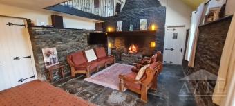 Huge traditional living room with double height ceiling and with 8ft wide fireplace. The living room was probably originally the full extent of the cottage.