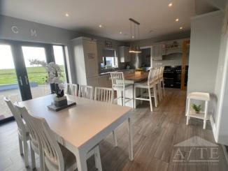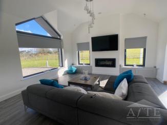 New 5 bed detached home, with views of Croagh Patrick. A1 rated Ryder Cup Accommodation with Air to Water heating system. 2 Very comfortable living areas with a spacious kitchen. This home would be ideal for the Ryder Cup goers to come back to in the evening and unwind while watching the days action on 2 large screen TVs. There is a traditional Irish Bar less than 1km away. Adare Manor is just over 1hr from our home.