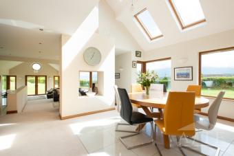 Looking out across Tralee Bay, a stone’s throw from Fenit pier, this luxurious coastal home is perfect for a large family or group. From the moment you enter, the high-quality finishes and thoughtful detailing in this spacious house sets the tone. It’s made for together time with family and friends, with a fabulous space for relaxing, unwinding, cooking, dining, eating together and making memories that will last a lifetime.