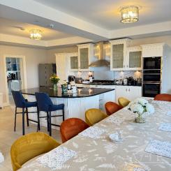 The house sleeps up to 14 guests across 7 bedrooms, featuring plush, deep mattresses, crisp white linens, and fresh towels.