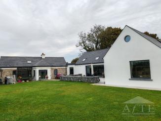 Discover an unforgettable private Irish countryside retreat. Our property includes two distinct areas located on a private driveway with security gate access only. The original 450sq ft house was originally built c. 1850 and completely renovated and modernized in 2020. It contains 1 double bedroom, cosy living room with stove and large bathroom. The adjoining c. 2600sq ft house contains 4 double bedrooms, incl. ensuite master bedroom, large bathroom, large open plan kitchen/dining and large living room. This property combines traditional charm with modern comforts, ideal for golf fans looking for something special. There is also a large outdoor entertainment area, outdoor furniture and barbecue facilities.