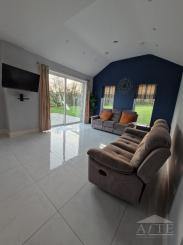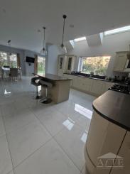 3 bathrooms includes a master bedroom with walk in wardrobe and ensuite, one large twin bedroom with 2 double beds, one double bedroom and one bathroom all located upstairs. One bathroom downstairs. The house has a modern kitchen, dining area, sun room and sitting room. It includes Wi-Fi and a patio with outdoor seating.