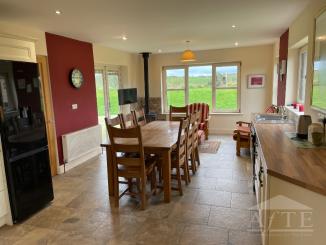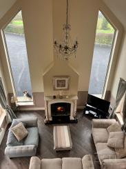 Guests will have access to a large impressive living room complete with a double wood-burning stove and unique double-height church-like windows. A full equipped generously proportioned kitchen with a small living area is also available to guests.