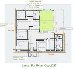 This Ryder Cup Accommodation offers four spacious double bedrooms plus an additional single bedroom ideal for a family or group who is planning on bringing a nanny that needs their own private room.