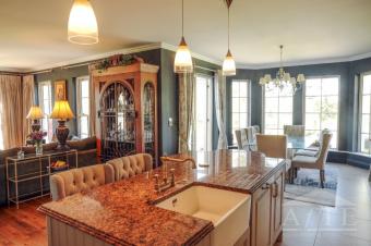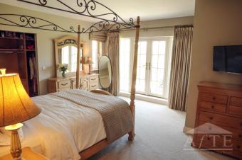 Inside, the home features a spacious open-plan kitchen, dining, and living area—perfect for both everyday living and entertaining. There are five double bedrooms, one of which has a balcony overlooking the 1.75-acre garden. In total, the property offers four bathrooms, including two en-suites.
