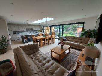 We have one ensuite bedroom, with walk in shower, toilet, sink and bidet. One family bathroom, with bath, separate shower, toilet and sink, and a downstairs toilet and sink. We have 2 large lounges and a large kitchen/diner/family room with glazing opening up fully into the garden.