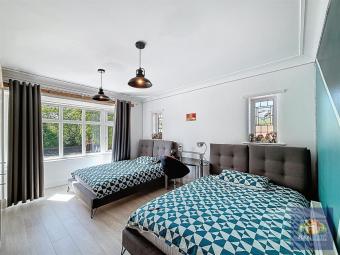Upstairs, a central landing leads to four generously sized double bedrooms, each offering comfort and versatility. The master bedroom features a private en suite bathroom, while a sleek and contemporary bathroom serves the remaining bedrooms.