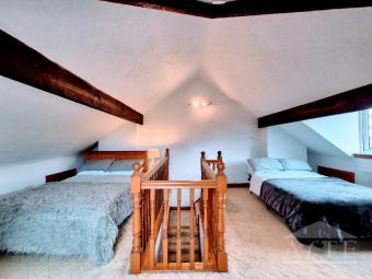 Upstairs, the first floor offers three generously sized double bedrooms, two of which include built-in wardrobes. Beds can be arranged as singles or doubles in each room on request. The property features a modern family bathroom with separate first floor WC. On the second floor is a fourth bedroom offering space for two further double beds and views over the extensive gardens.