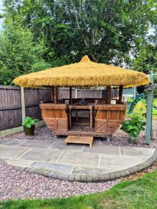Externally, the property features off-road driveway parking with EV charging facilities and a generous, sun-drenched rear garden complete with an outdoor seating and BBQ area. A standout feature is the tiki hut, which has its own heating and lighting — perfect for entertaining guests during the Open or relaxing after a day at the course.