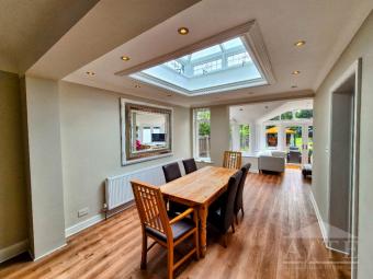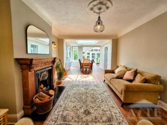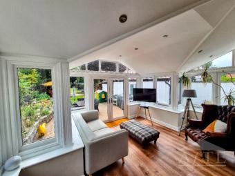 Internally, the ground floor comprises of a bright and welcoming entrance hallway, a spacious front lounge with a charming bay window, a stylish sitting room that flows into a dedicated dining area and orangery, and a large contemporary kitchen featuring integrated appliances. There is also a separate ground floor WC.