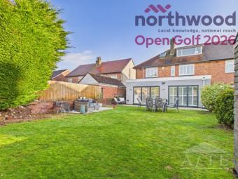 Outside, the home boasts an attractive frontage with a generous driveway and well-maintained gardens, creating a peaceful retreat just moments from the action of the tournament. To the rear, the home boasts a beautifully maintained rear garden, offering a generous lawn and multiple seating areas perfect for relaxing or entertaining during the tournament. With stylish patio spaces, mature hedging providing excellent privacy, and direct access from the living areas through sleek bi-fold doors. This outdoor area is ideal for enjoying warm summer evenings after a day at the golf.
