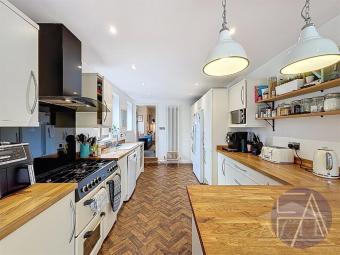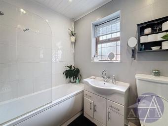 Upstairs, the first floor offers three bedrooms — two of which are doubles — with the master bedroom featuring built-in wardrobes. A modern three-piece family bathroom completes the accommodation.