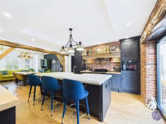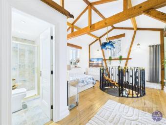 Leading from the hallway is a cloakroom and internal access to the sympathetically renovated stables annexe. This two-storey, quirky accommodation has its own ensuite and bedroom with a spiral staircase to the dressing room which can be a sixth double bedroom or an additional sitting area with access to the courtyard.