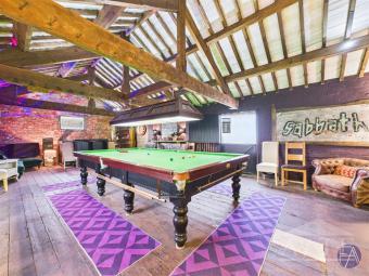 The detached barn houses a canoe and three paddleboards with life jackets. Upstairs is a quirky games room with a full-sized snooker table, darts board and stocked bar.