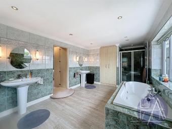 The first floor briefly comprises of; four bedrooms with two featuring ensuites and one with balcony access, further two bedrooms make use of a four piece bathroom.