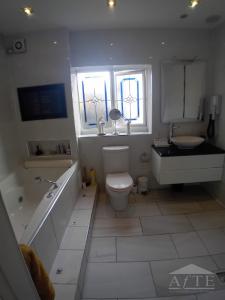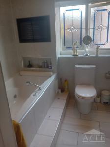 Distance to course is 11 minutes drive. The Open Accommodation at this lovely 4 bedroom dethatched house. One bathroom with a tv, air bath, wet room. Two bedrooms have sink bason. Master room has 55" tv. Downstairs has toilet and bason. Kitchen modern with tv, lounge tv very modern and comfortable, large rear garden, front garden can fit 3/4 cars. Town center location, 2 mins walk to Tesco and shell.