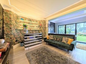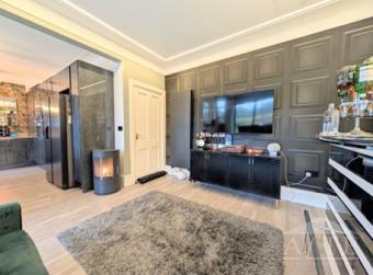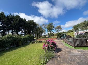 The welcoming entrance hallway leads into a charming, bay‑fronted lounge that exudes warmth and character. To the rear, an impressive open‑plan social space—finished to a high standard—includes a stylish fitted bar, large TV with sound system, and a dining area with bench seating. Bi‑fold doors open directly onto the garden, offering pleasant views towards the 13th and 14th tees of SNA’s golf course.
