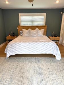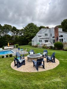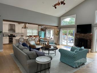 Fabulous private location yet so close to Village and ocean beach. This spacious light filled contemporary US Open Home Rentals sits on a private acre and features a gorgeous heated pool, hot tub, outdoor kitchen, outdoor shower, fire pit, swing/play set and spacious lawn for summer outdoor activities. Chic great room with large sitting area, dining and updated kitchen, master en suite king bed on the first level, plus two additional queen bedrooms and full bath. Upstairs is a bedroom with a California King bed and a "to die for" bunk room featuring 6 beds and full bath. Central air, indoor/outdoor Sonos speakers. US Open Home Rentals within close proximity to train station, Gabreski airport and Hampton Jitney.