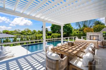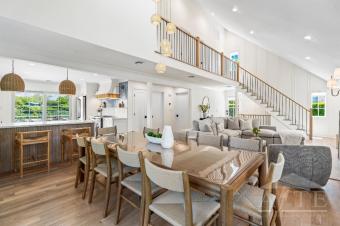 Southampton Village! US Open Accommodation 3 miles from SHINNECOCK HILLS GOLF COURSE. Completely redesigned and newly rebuilt. 1 Mile from Main Street, 2 miles to the beach, located in a private cut de sac in the Dunes of Southampton. This coastal chic home features almost 3000 square feet of interior living space plus an outdoor lounge and dining area. First floor features king-size primary bedroom with sliders leading to outdoor living amenities and marble bath, a double height family room and dining room, with a new marble-surround gas fireplace, chef's kitchen stainless steel appliances, 6 burner gas stove, waterfall island with white-oak fluted detail paneling and wall of sliding glass doors showcasing outdoor oasis. Upstairs features an interior balcony overlooking expansive first floor living space, second primary suite with luxurious ensuite bath and soaking tub, custom applied molding, and walk-in closet. There is an additional oversized bedroom with new full bath in hallway plus an office. The open staircase leads to a fully finished basement with recreation room and ping-pong table, new bathroom, bonus room with egress, and laundry room. Entire home is new from insulation to electrical and plumbing to new siding, roof, windows and outdoor living areas. Exterior amenities include a marble patio with sleek cable railing, overlooking the gas heated salt-water pool and lounge area, pickle ball and tennis court and surround sound Sonos speakers. Custom pergola, gas bbq grill. This secret gem is village living at its best close to Hampton Jitney and train stop as well as miles of pristine beaches and Southampton Village. Enjoy restaurants, shops and entertainment. Set on a quiet cut de sac enjoy all the Hamptons offers in a newly reconstructed home. Flexible dates available.