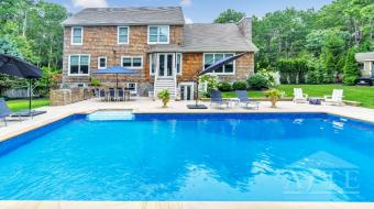 US Open Accommodation only 8 miles from Shinnecock Hills Golf Club; a custom 5 bedroom, 4.5 bath, 3 Ensuite bedrooms, chefs kithcen, full finished basement with a game room. Full out door kitchen, new patio, in ground pool. Covered porch. Newly redone master bath with jacuzzi tub. Set back in the Southampton pines for enhanced privacy.