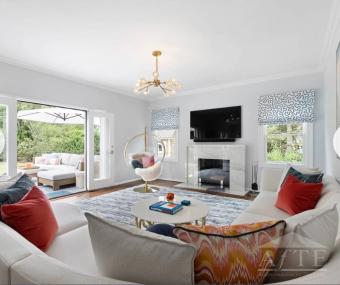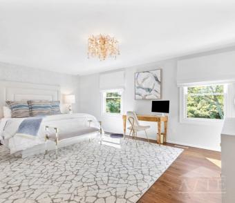 Beautifully renovated and designer-decorated Southampton house located on a quiet cul-de-sac bordering the Southampton village and minutes away from world-class ocean beaches, golf courses, great restaurants and shopping. Capturing the essence of Hamptons style, this 5 bedroom, 4 bathroom US Open Accommodation on 3 levels is appointed with high-end furnishings, custom windows and window treatments, luxurious wall coverings and beautiful fixtures throughout. A welcoming covered porch leads to the first level, with open plan living and dining spaces with views to the pool and beautiful backyard that allows for easy entertaining. Patio doors open onto a spacious deck with the pool area beyond. Outside you will also find a beautiful gas-fired fire pit area. Inside, on the first floor, you will find a gas fireplace and an ensuite guest room. Upstairs, the ensuite primary bedroom and two additional bedrooms are well-appointed to ensure comfort and privacy. The lower level showcases a media lounge, full bath and another large bedroom as well as a laundry area. The crowning glory of this jewel home is the spectacular garden and pool area. A spacious wood deck with plush seating and outdoor dining area overlook a new, 20x40 heated saltwater gunite pool with stadium steps. Surrounding the pool is a stone patio with cushioned chaise loungers shaded by umbrellas. Lovely plantings throughout this US Open Accommodation provide natural beauty and privacy. A gas firepit with seating area is a wonderful gathering area in the evenings. High-speed internet and sound system are found throughout the house as well as the grounds, including around the deck and pool area for your entertainment.