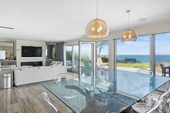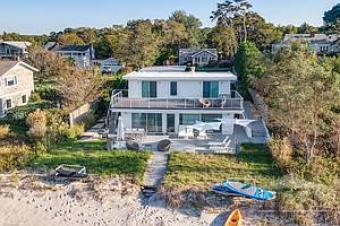 Waterfront home located on the Peconic Bay. Private beach access. US Open Accommodation 3.7 miles (8 minutes) to Shinnecock Hills golf course. 6.8 miles (13 minutes to Southampton Village). Main house is 4 bedrooms, 2 full baths, one half bath. Sleeps 8. Cottage/Guest house on property with an additional two bedrooms, kitchen, living room, and one full bath. Sleeps 4.