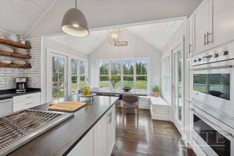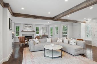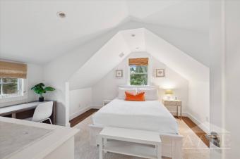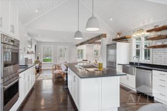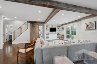 US Open Accommodation twenty five min drive to Shinnecock Golf Course and moments to historic downtown Sag Harbor Village and killer sunsets at Long Beach and Sunset Beach in North Haven. This three bedroom two and half bath home has everything you are looking for in a summer stay. Open living and kitchen area, fireplace, vaulted dining area, first floor primary and two cottage style bedrooms on the second floor. Beautiful fenced in back yard offers a fire pit, outdoor shower for post beach days, two patio areas for evening dining and poolside entertaining. The 18x45ft pool is perfect for morning laps and built in sundeck for young children along with an auto cover for their safety when not in use. The lower level has laundry, peloton and matted floor area. Take the bike lanes to Sag Harbor Village, Shelter Island and Greenport for a fun filled days. Stroll to bay beaches and short drive to world renowned ocean beaches.