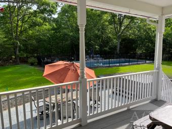 US Open Accommodation 6 miles and less than a 15 minute drive from the Shinnecock Hills golf course, this 5 bedroom 4 bathroom house is situated on 1.2 acres in Hampton Bays with an expansive backyard and covered deck leading down to a heated saltwater pool and jacuzzi. The house is perfectly situated less than a mile from the East Landing beach, close to downtown Hampton Bays with excellent bars and restaurants, and less than a 15 minute drive to Ponquoge Beach.