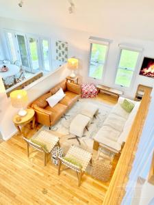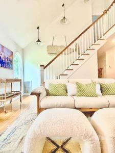 Sun-filled home with oversized windows and heated pool. 3 bedrooms, 2 kings, 3 queens. House sleeps 8-10 guests. Loft area for reading, games, and relaxing. Open living space with natural bright sunlight throughout the home. 16 miles to Shinnecock Hills Golf Club.