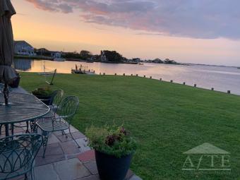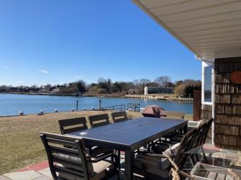 Open South Facing Bayfront with Forever Views across Shinnecock Bay! This US Open Accommodation cannot be beat for its views! This home offers three bedrooms, two full and one-half baths, cathedral living room with glass sliders facing south with amazing views across the bay, open kitchen, formal dining area and sitting room. The primary bedroom has a slider out to the waterside patio. Two additional guest rooms. Laundry room and office. Outside enjoy the large sunny waterfront patio perfect for relaxing or entertaining. Keep your boat at your private dock on Shinnecock Bay and enjoy swimming and all water activities. Central Air, Outdoor Shower, Boat Dock, Gas BBQ, Canoe, Kayak, Paddleboard, Swim and Go Fishing from the bulkhead. One of the best views in The Hamptons! 5 Minutes to Southampton Village Shopping and Ocean Beaches.