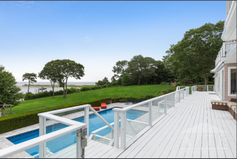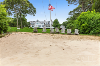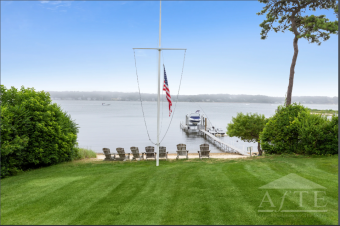 Sliding glass doors lead to a stunning waterside deck with endless bay views. Outdoor amenities include an in-ground swimming pool, hot tub, and serving bar, ideal for hosting summer gatherings. Completing this extraordinary retreat are a private sandy beach, deep-water dock, breathtaking sunsets, and refreshing summer breezes—making this the ultimate Hamptons escape for both leisure and lifestyle.