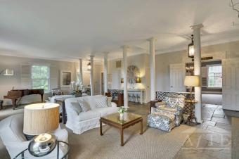 Magnificent 4 BR/5 BA home with plenty of living space in the Estate section of Quogue. Main floor features a grand living room, country kitchen and indoor/outdoor dining area, formal dining room, family room, and a 1st floor study with pull-out couch. Upstairs: a spacious primary suite, junior master suite, and two more guestrooms with shared bath. Outside is a new gunite pool surrounded by lawns and mature landscaping.