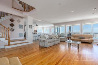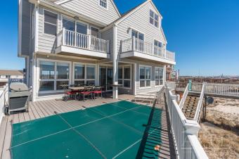 Oceanfront location for the US Open! Located on Dune Road in Westhampton - US Open Home Rentals 8 miles from the Gabreski airport shuttle station. This three story home has 6 bedrooms, 5 full baths and a second living area on the 3rd floor. All king & queen sized bedrooms are newly appointed with brand new mattresses in 2024. Two bedrooms have en-suite bathrooms, three bedrooms have balconies. There is a heated pool on the oceanfront deck and a gas grill with house hook-up provided (no need for fuel tanks). The spacious kitchen is equipped with a Subzero fridge and DCS gas/electric chef's range including grill, griddle and exhaust hood. The oversized living room with extra high ceilings offers amazing water views of both the ocean and bay. You will enjoy down time on 150' private piece of oceanfront beach paradise. A fully private boardwalk leads straight from the rear deck to your private beach. Catch gorgeous sunsets over the bay in the evenings while relaxing on the front deck wicker chairs. Located just a couple houses away from Cupsogue Beach County Park, you are only a short walk away from a lobster roll, cocktail, or live music @ Tiki Joe's. John Scott's Surf Shack, Dockers, Sundays on the Bay & Oaklands are all further east Dune Road destinations.